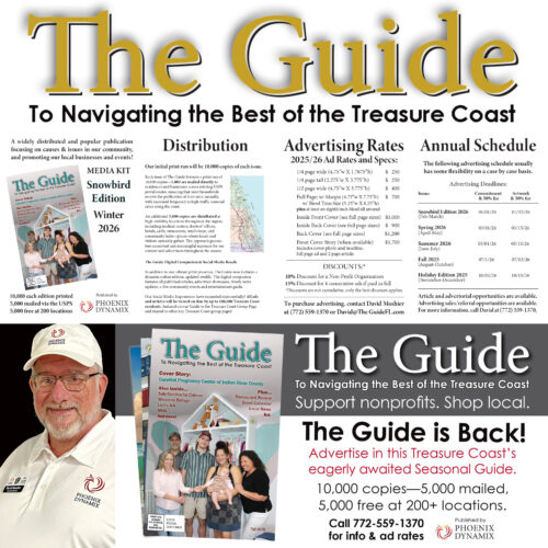 The Guide to the Treasure Coast is a community-focused print and digital publication dedicated to promoting local businesses, nonprofits, events, and causes that make the Treasure Coast a special place to live. Through thoughtful articles, curated event listings, and business and nonprofit spotlights, we help organizations increase visibility, build trust, and connect meaningfully with the local community. Our platform goes beyond traditional advertising by emphasizing storytelling, community engagement, and relationships—supporting a vibrant, informed, and connected Treasure Coast.